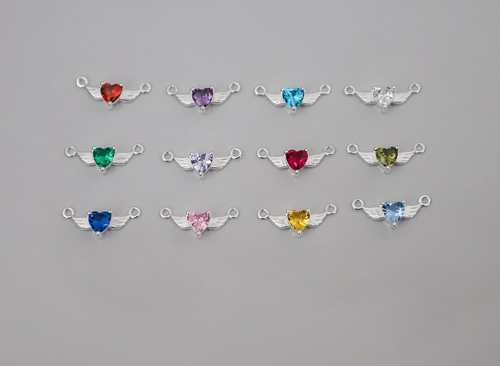 Birthstone heart wing connector